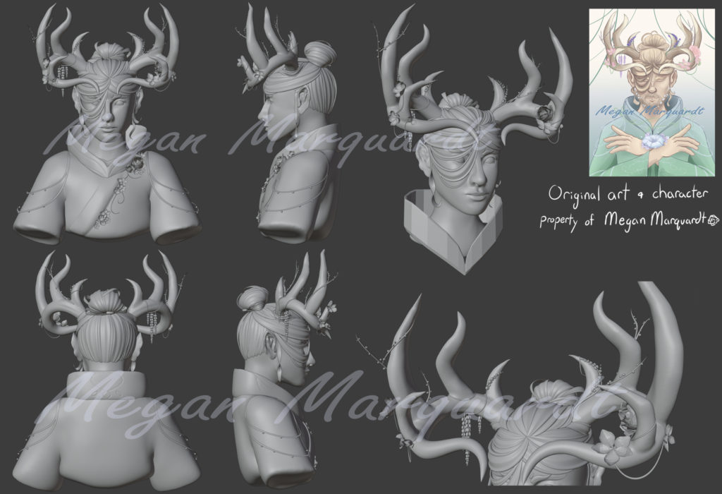 In my 3D animation class, I made a simple object, a complex object, and then my final project was a digital sculpted original character bust. All models made in Blender.